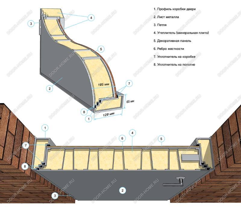 | 1. Заполнение полости короба и створки минеральной ватой позволяет увеличить тепло- и шумоизоляцию двери. |